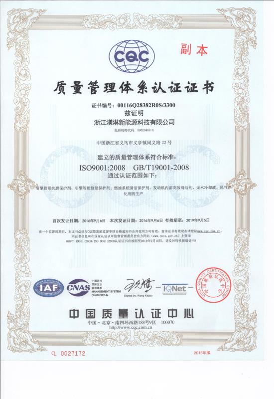 浙江渼淋新能源科技有限公司,是一家致力于新能源的探究及納米高科技領域產品研發、生產、銷售為一體的高科技企業。企業還致力于各種軍事、化工、航天、航海、重型工業、汽車工業等行業的物理、化學,納米尖端高科技領域產品的探究,在“汽車后市場”領域具有尖端的科研成果,是全球研發安全,高效,環保,新型汽車養護美容系列產品的主導者。